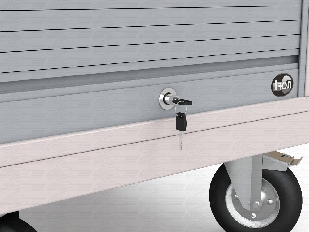 -- Тумба с дверью жалюзи запирается на замок и предназначена для надежного хранения системного блока, устанавливается в нижней части тележки и крепится к днищу при помощи крепежа (входит в комплект поставки)